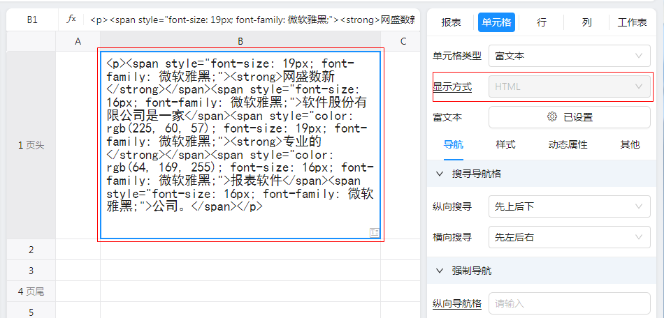 富文本是指可以对字体进行样式设置的一种文本,辅助 单元格样式 展现更多更精彩的报表模板。一个单元格中,所有内容只能设置一种样式,通过富文本可将一个单元格中的内容设置不同的样式。